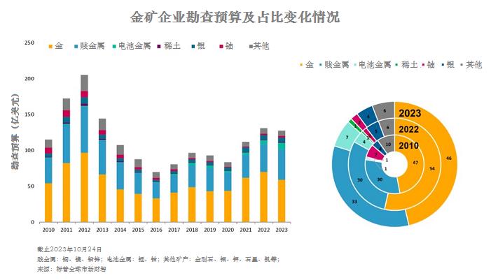 以初级勘探公司投入为主的金矿勘查预算降至60亿美元以下,减少11亿美元,降幅16%。