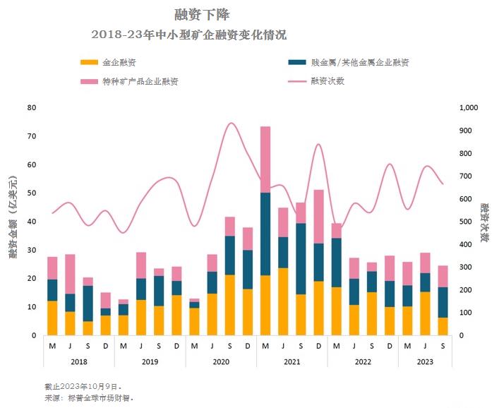 从季度上看,今年第三季度中小型矿业企业金矿勘查融资创2018年三季度以来的新低。
