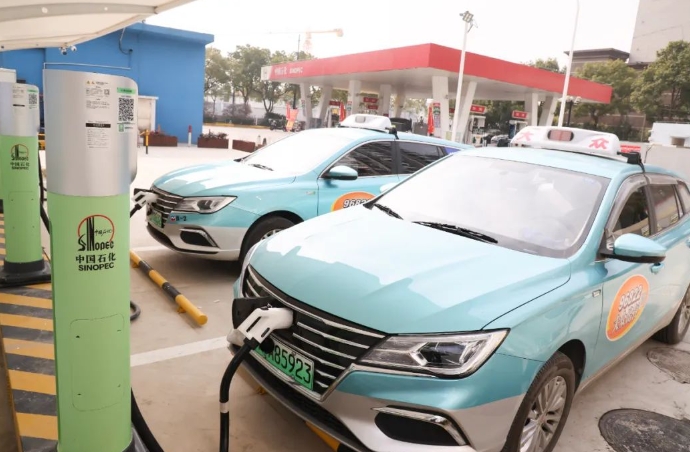 ▲上海石油新泾加油站新能源出租车充电示范站(资料图)