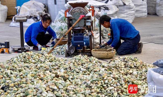 “比如,我们长期从国内岫岩等玉石产地收集玉石的下脚料,回来后将这些下脚料经过球磨、抛光后,变废为宝,弥补了天然雨花石品类单一的缺陷。”荣昌雨花石工艺品厂负责人周学明介绍,将这些玉石加工后,会根据客户需求分装到各种小包装袋中,一袋重量在1-20千克不等,以小包装的形式走上超市货架。
