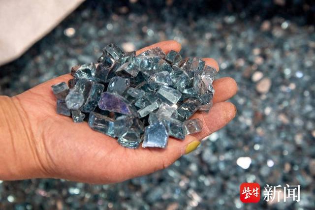5月29日,扬州仪征市月塘镇荣昌雨花石工艺品厂内,一块块3米多长、2米多宽的钢化玻璃,经粉碎、分筛、定型等工序后,成千上万颗钢化玻璃颗粒从机器中“争先恐后”而出。这是“雨花石之乡”月塘打造“雨花石+”产业链的一个场景。
