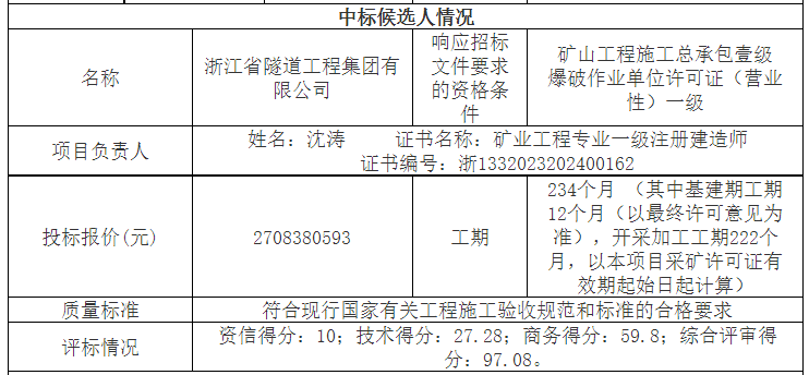近日,浙江省温岭市公共资源交易中心发布台州温岭市山海文旅矿地综合开发利用项目石塘镇后沙村岙里建筑用石料(凝灰岩)矿工程开采工程中标候选人。中标候选人为浙江省隧道工程集团有限公司,投标报价超27亿元。