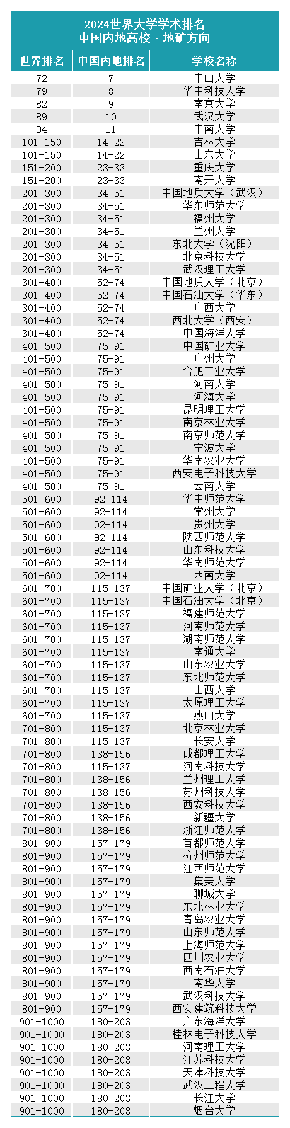 矿业界对上榜的203所我国内地大学中开设地矿相关专业的高校进行了梳理,详见下图。相较去年,涉矿高校中,东北大学(沈阳)、中国石油大学(华东)、西北大学(西安)、合肥工业大学、昆明理工大学、成都理工大学等高校的世界排名均有显著上升,其中西北大学(西安)排名上升幅度最大。