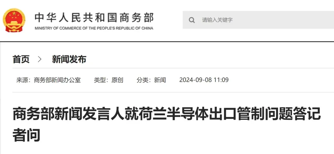 据商务部网站8日消息,商务部新闻发言人就荷兰半导体出口管制问题答记者问。