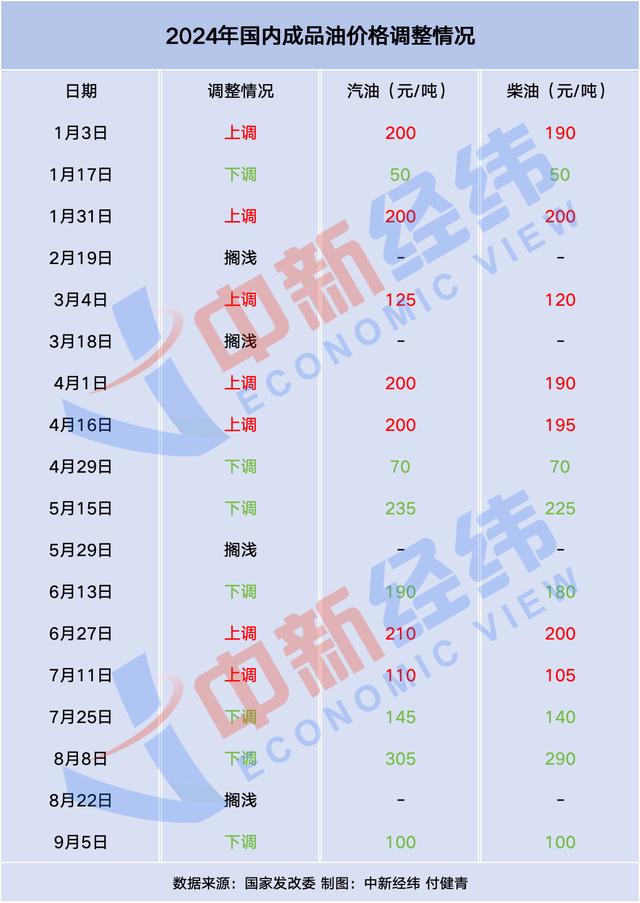 目前,成品油年内最大下调幅度为汽油降305元/吨,柴油降290元/吨。若按机构测算,本轮调整或现年内最大跌幅。