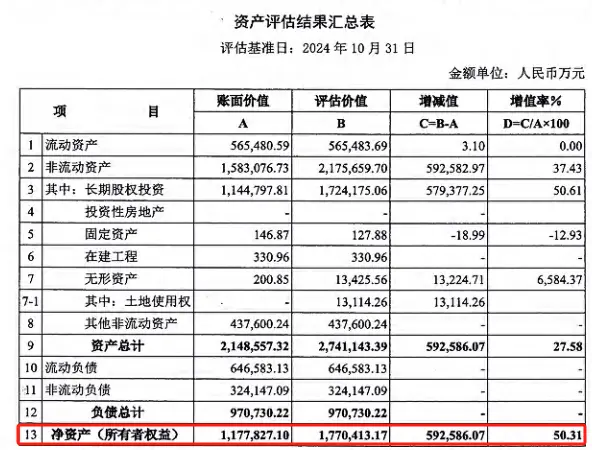 根据评估报告披露,陕煤电力集团净资产评估值177.04亿元,评估增值59亿元,增值率50.31%。