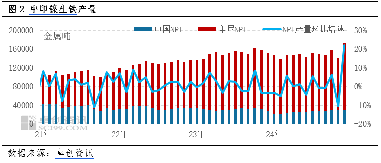 同时,以中国不锈钢企业为例,行业“内卷”严重,利润空间所剩无几,成本倒挂导致钢厂开工出现松动,这也会预示着镍铁整体需求减弱。而供应角度上,近年来全球镍冶炼企业层出不穷,且印尼地区镍冶炼产线逐步投产后产量正在攀升峰值。以镍生铁为例,2024年全年中印两国镍生铁产量接近180万吨,而在2019年两国镍生铁产量仅有100万吨左右,五年累计增幅高达80%。因此市场认为,“红利蛋糕”所剩无几后进入者利润难以保证,菲律宾“禁矿”法案通过概率并不大。