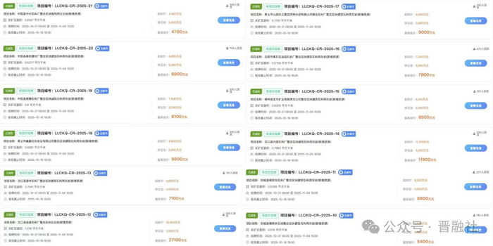11月4日,据山西省自然资源网上交易平台显示,山西吕梁12宗砂石矿全部交易成功。12宗矿总资源储量超12亿吨,出让总价11.29亿元,最高一宗成交价为2.71亿元。