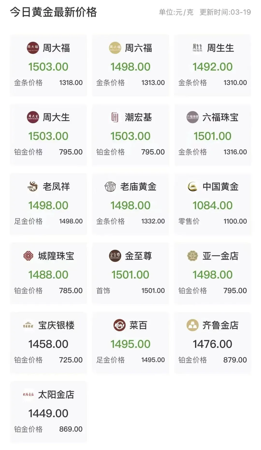 3月2日,他从朋友的珠宝公司购入100克金条,成交价为1188元/克。“当时还觉得这数字挺吉利,想着稳赚了。”郑先生苦笑说。