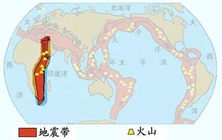图中标粉色的即为地中海一印度尼西亚火山带