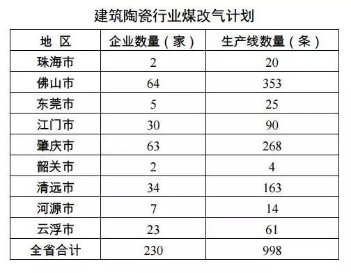 根据《方案》要求,广东省共有230家企业、998条生产线被列入“煤改气”计划列表。