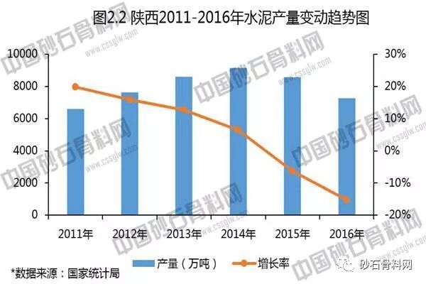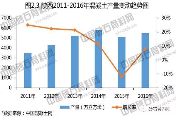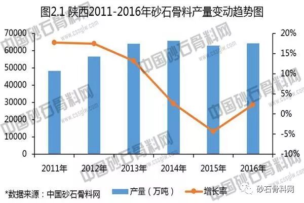 2.1 2011-2016年陕西砂石骨料产量变动趋势