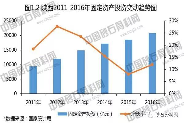 1.2 2011 -2016年陕西省固定资产投资变动趋势