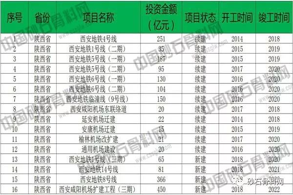 以下对陕西省2018年在建和续建的重点基建项目进行了分类总结。