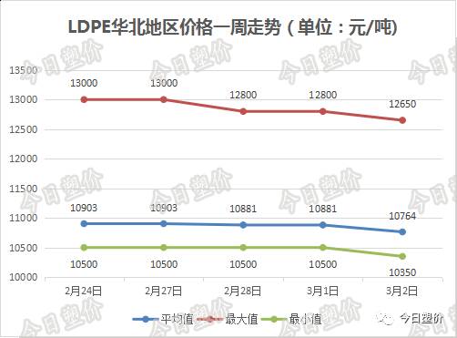 昨日线性期货延续弱势,加之石化企业出厂价格下调,市场报盘进一步走跌,线性产品走跌50-100元/吨,高压产品走跌100-200元/吨。临近周末,预计今日市场仍延续弱势为主,观望氛围浓重,实盘成交多商谈。
