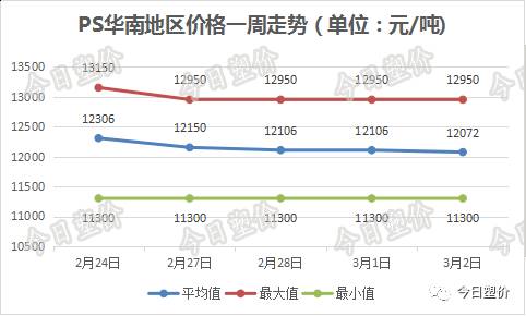 上游苯乙烯方面,3月2日FOB韩国主港收盘价格上涨32美元/吨报1375.5-1376.5美元/吨,国内华东苯乙烯收盘价格上涨75元/吨报10725元/吨。