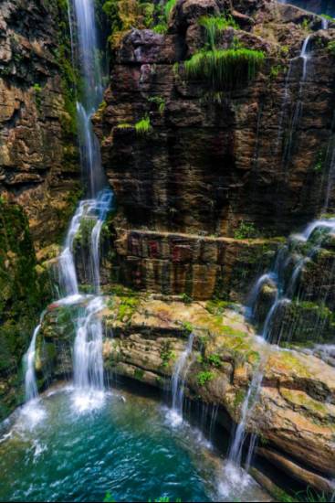 我叫红石峡,是进入云台山景区的第一个自然景观景群,从云台山山门一路走来,全都是灰黑色石灰岩构成的、缺少植被的、破碎的山体和干涸的、荒凉的、卵石堆积的河道,一走到红石峡谷入口的赤壁丹崖前,已经是红岩碧树的另类风情,再走进红石峡谷内,跃入眼帘的是一线天和隆隆的水声,与谷外的荒凉形成了鲜明的对比,给人强烈的震撼。