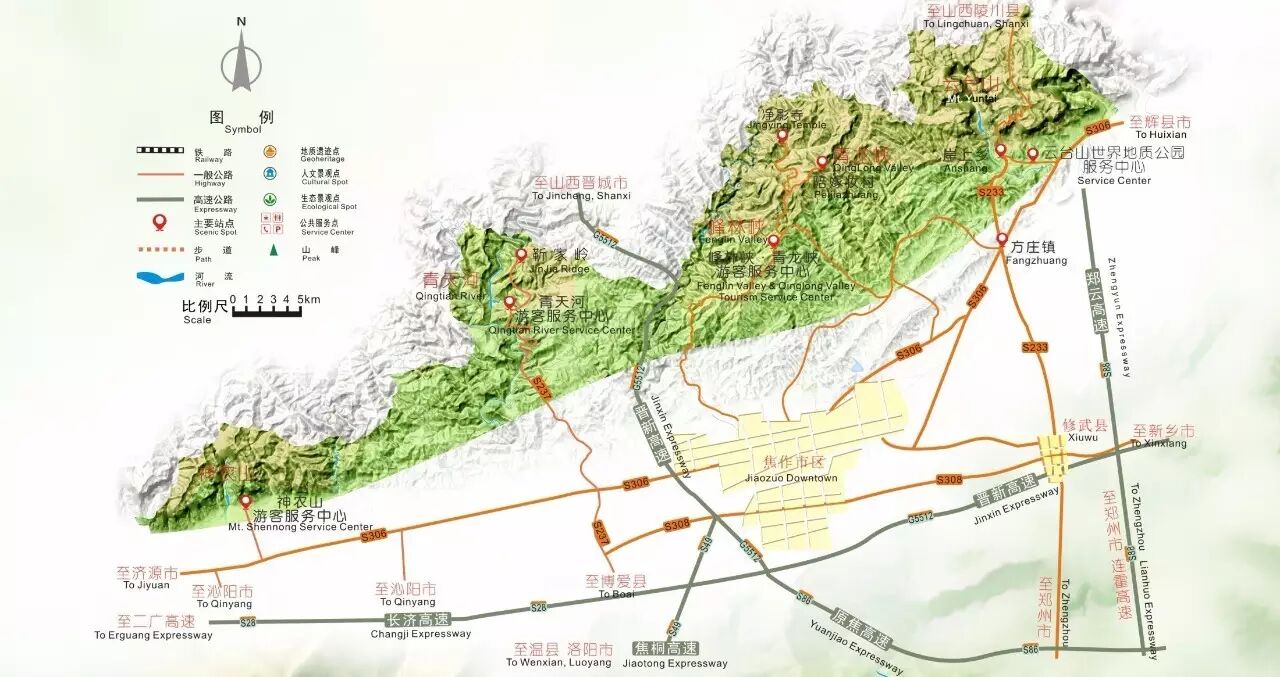 焦作市是太极拳的故乡,因位于太行山之南、黄河之北,称为“山阳”。泉华、鱼子石、龙脊长城、鲸鱼湾、罗汉崖、三姑泉、峰林、落水洞、谷中谷、太行面、溶洞、钟乳石等都是典型的地质遗迹。
