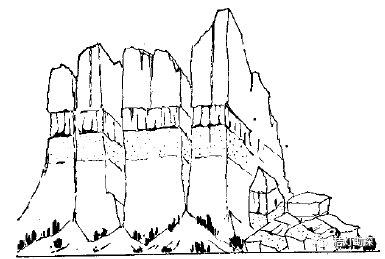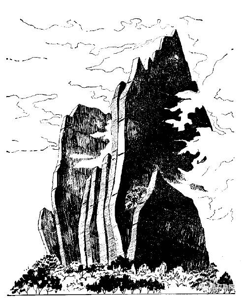 岩层垂直的山形: