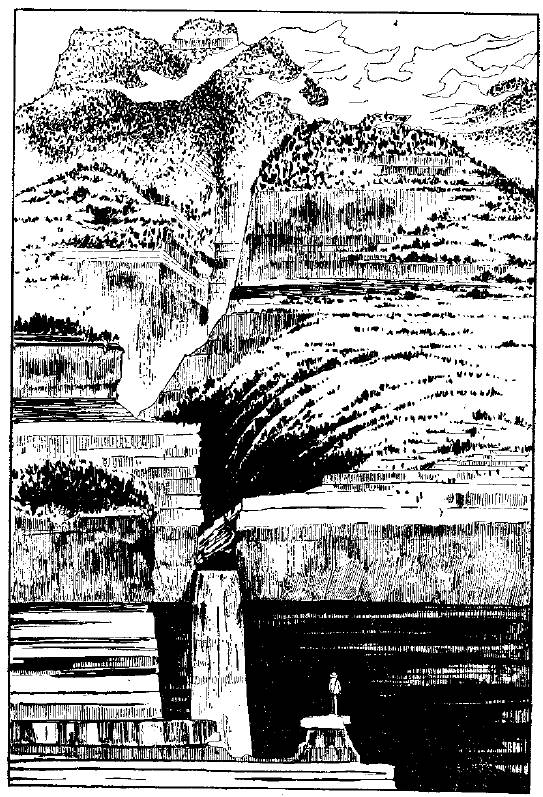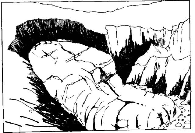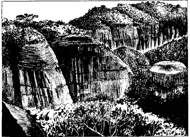 照景岩溶峰形态,陡崖的形成与河流曲流的下切侵蚀作用有一定的关系(湖北建始,根据丁民雄稿绘制)