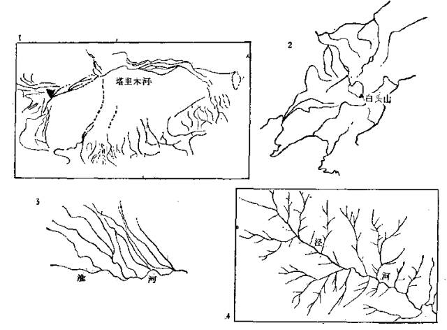 河系类型:河系的类型与地质构造和岩性有着密切的关系,可分树枝状、羽毛状、平行状、格状、放射状、环状等。