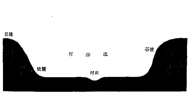 河漫滩河谷谷底比河床宽得多,谷底宽广而平坦,河床在谷底中蜿蜒着,涨水时谷底通常为水所淹没而形成河漫滩,同时有牛轭湖和由牛轭湖淤塞而成的沼泽或凹地。成形河谷的特征是具有阶地。