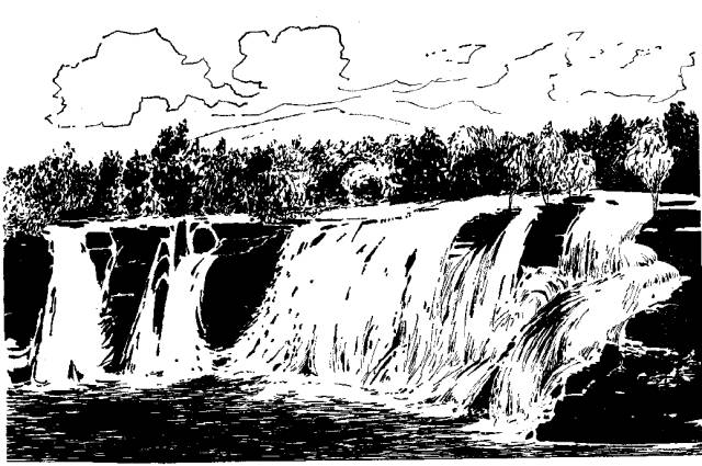 瀑布是一种明显的跌水现象,是河流下蚀作用过程中碰到坚硬岩石形成的。