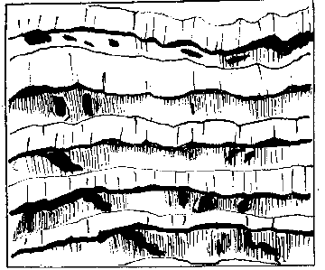 生物礁体受海水的溶蚀、侵蚀,出现瘠沟、溶孔(南海)