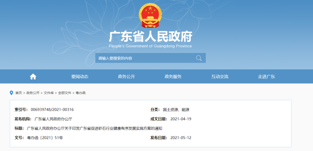 广东省促进砂石行业健康有序发展的