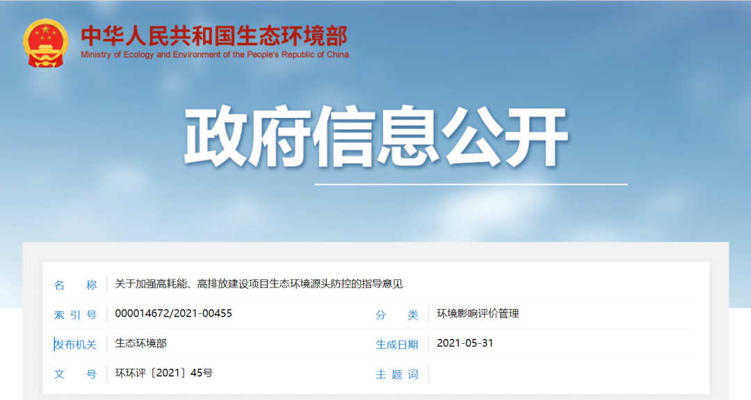 关于加强高耗能、高排放建设项目生态环境源头防控的指导意见