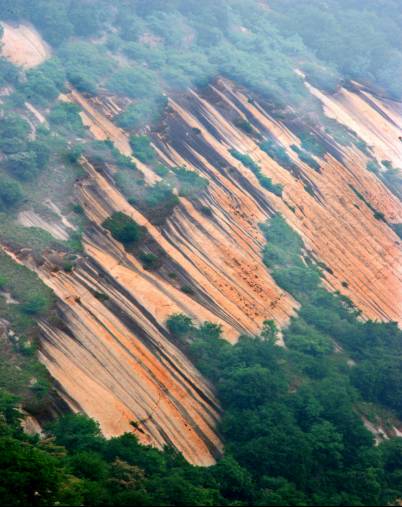 此外,在断层劈理带发育的部位,常常形成墙瀑、石墙、孤峰、峰丛和峰林。在崖壁和山顶,常常形成拟人似物的象形山石(蘑菇石、风动石、凤砺石、神龟石)。
