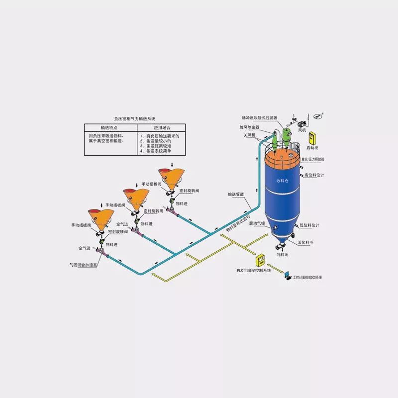 1、输送压力远低于环境压力,即使管道破损也不会造成物料泄漏而对环境造成污染;