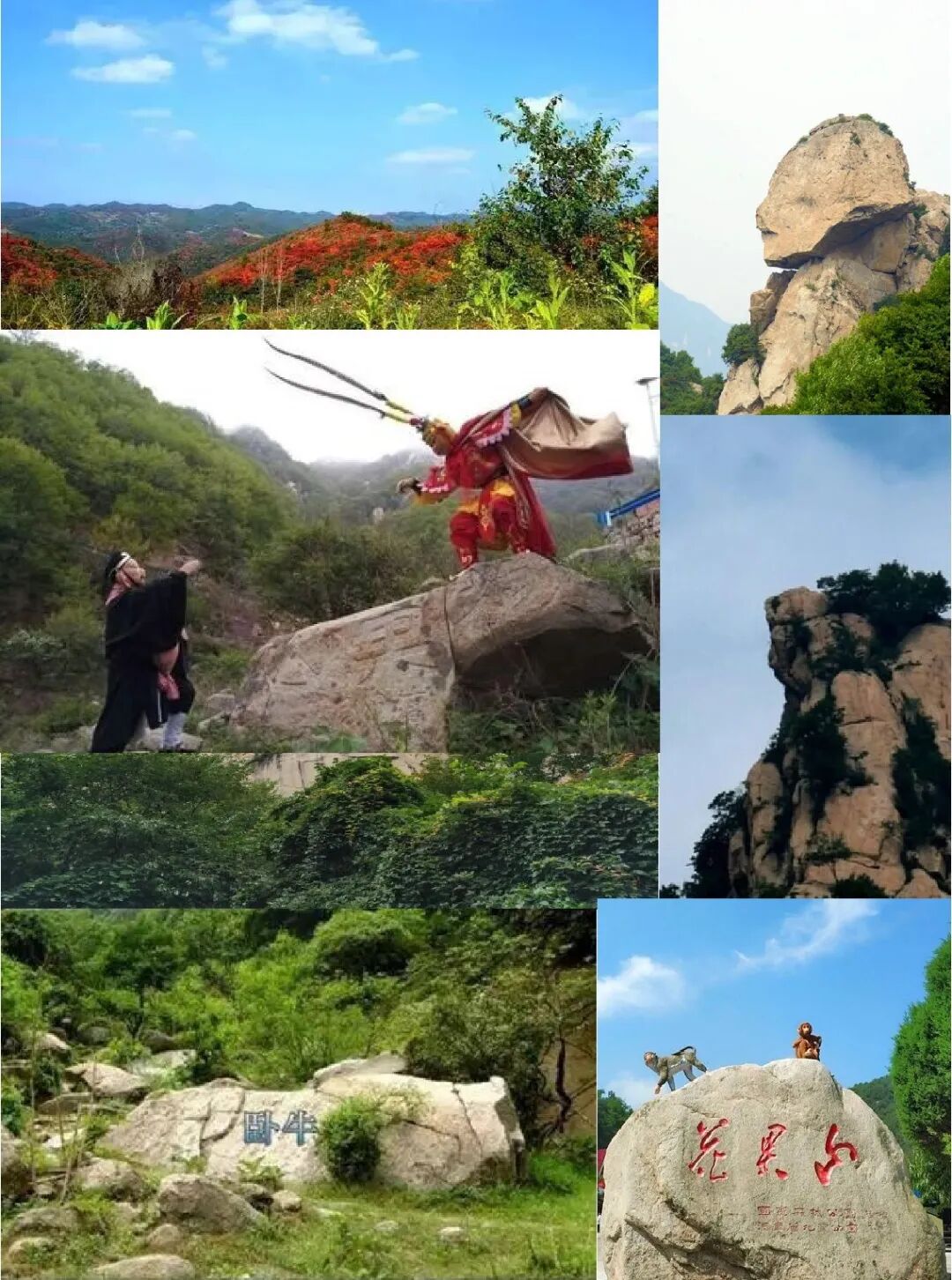 由花岗岩构成的宜阳花果山,象形石是其主要的旅游景观,而由花岗岩风化沃土培育的繁杂的植物,和象形石相辅相成,构成了花果山地质公园一道靓丽的风景线。