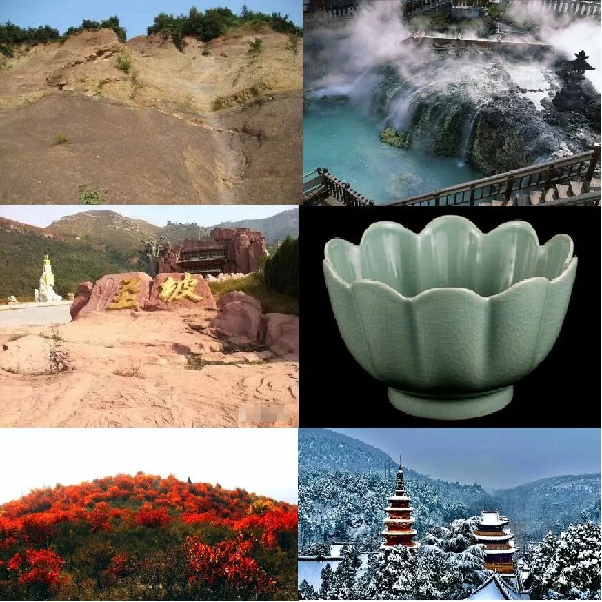 “一冷一热一怪坡,一山一寺汝瓷特”,这就是汝州地质公园的特色。“一冷”是指蟒川镇罗圈村一带6亿年前的古冰川遗迹;“一热”是指温泉镇的地热温泉;“一怪坡”是指骑岭乡东北部,北依大槐山,南邻雪窑村附近的一段“上坡如下坡、下坡如上坡”的山坡;“一山”是指大红寨,汝州知名景区;“一寺”是指风穴寺,汝州境内最为著名的寺庙;“汝瓷”是汝州特产,是中国国家地理标志产品,以青瓷为主,具有"似玉非玉而胜似玉"的特色,目前汝州已经打造成“汝瓷小镇”,进行产业振兴。