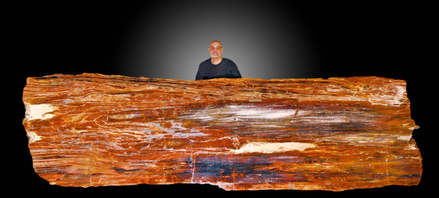 本次将亮相黄石矿博会的奥卡松硅化木产于美国亚利桑那的三叠纪地层,不仅完全玛瑙化形成了珍贵鸡血玛瑙,而且是目前世界最大单块,长421cm,直径127cm,重19000公斤,形成于2.18亿年前。